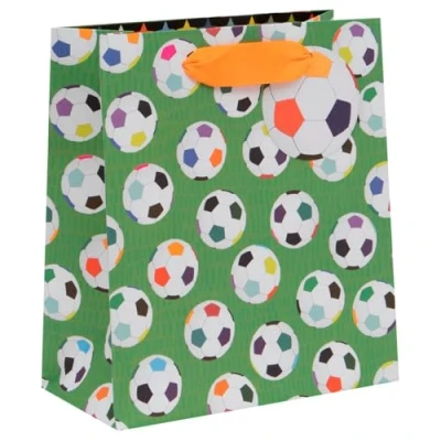 Glick Luxury Gift Bag, Football Large Celebration Birthday Soccer Bag for Boys, 260 x 315 135mm, Green