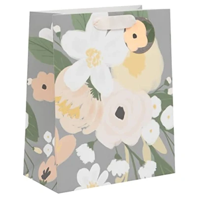 Glick Luxury GIFT Bag, Grey Floral Large, Birthday, Wedding, Celebration, Stephanie Dyment Wrap, 260x315x135mm, Multi Colour, Grey/Multi, BAG LARGE