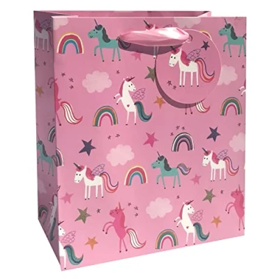 Luxury medium gift bags, these are sturdy and will fit most types of medium-sized presents, or multiples of smaller presents. This gift bag will make wrapping those smaller gifts much easier. With over 80 designs and sizes of gift bags to choose from, we have gift wrap for every occasion you need This pink unicorns printed gift bag is perfect for birthdays, baby showers, thank you gifts and so much more! It comes with ribbon handles, and a gift tag attached to write your own message on Printed on high quality 190GSM paper, a thicker but bendable material, perfect for carrying heavy gifts, or for keeping fragile gifts protected inside The dimensions of this gift bag are width - 175mm, height - 225mm and depth - 100mm. Perfect for those medium-sized gifts, and allows gift wrapping to be done with ease You will find everything you need in our wide range of quality printed gift bags of all sizes, wrapping paper, tissue paper, gift wrapping bows and ribbon, gift tags and gift wrapping accessories
