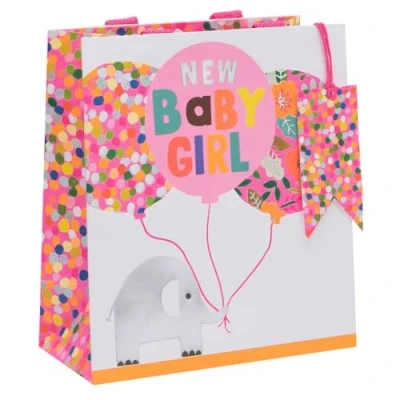 Glick Luxury Gift Bag, New Baby Girl Pink Elephants Medium Celebration 200x225x100mm,