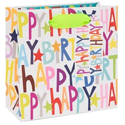 Glick Luxury Small Gift Bag, Paper Salad Happy Birthday Suitable for Smaller Presents such as Perfume and Jewellery, 140x140x60mm, Multi Colour