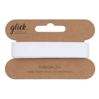 Glick Luxury White Gros Grain Ribbon 3 metres in Length, for Gift Wrapping and Other Arts & Crafts, 1.6 cm x
