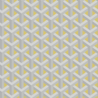 A bold and striking design which features a three dimensional geometric effect. Please note: Actual pattern repeat is 17.6cm. Seen here in the Yellow colourway.