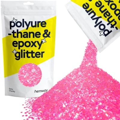 PREMIUM RESIN GLITTER: Our glitter adds a cool shimmer to epoxy & polyurethane resin projects; ideal for making candles, tumblers and resin accessories; use as a garage floor glitter, or mix with coatings as a glitter epoxy additive. EXTRA CHUNKY GLITTER: Whether you're crafting resin art, making jewellery, or adding sparkle to a coaster, our glitter adds extra sparkle to your resin creations; the flakes help to scatter light and remain suspended within the resin. DURABLE & LONG-LASTING: Its waterproof & fade, heat and solvent-resistant; the colourfast and super reflective properties help maintain brilliance over time; our resin glitter has 50 colours and 6 sizes to choose from. EASY TO MIX GLITTER: Specifically designed for use in polyurethane & epoxy resin; the high-quality flakes blend smoothly into resin projects, ensuring a consistent, sparkly finish; suitable for all skill levels. BABY PINK IRIDESCENT GLITTER: Hemway epoxy glitter will add a bright and eye-catching effect to all your resin designs; ideal for a variety of arts & crafts. DISCLAIMER: Colours may vary in different lighting conditions.