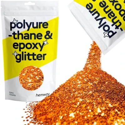PREMIUM RESIN GLITTER: Our glitter adds a cool shimmer to epoxy & polyurethane resin projects; ideal for making candles, tumblers and resin accessories; use as a garage floor glitter, or mix with coatings as a glitter epoxy additive. EXTRA CHUNKY GLITTER: Whether you're crafting resin art, making jewellery, or adding sparkle to a coaster, our glitter adds extra sparkle to your resin creations; the flakes help to scatter light and remain suspended within the resin. DURABLE & LONG-LASTING: Its waterproof & fade, heat and solvent-resistant; the colourfast and super reflective properties help maintain brilliance over time; our resin glitter has 50 colours and 6 sizes to choose from. EASY TO MIX GLITTER: Specifically designed for use in polyurethane & epoxy resin; the high-quality flakes blend smoothly into resin projects, ensuring a consistent, sparkly finish; suitable for all skill levels. COPPER GLITTER: Hemway epoxy glitter will add a bright and eye-catching effect to all your resin designs; ideal for a variety of arts & crafts. DISCLAIMER: Colours may vary in different lighting conditions.