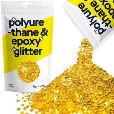 PREMIUM RESIN GLITTER: Our glitter adds a cool shimmer to epoxy & polyurethane resin projects; ideal for making candles, tumblers and resin accessories; use as a garage floor glitter, or mix with coatings as a glitter epoxy additive. SUPER CHUNKY GLITTER: Whether you're crafting resin art, making jewellery, or adding sparkle to a coaster, our glitter adds extra sparkle to your resin creations; the flakes help to scatter light and remain suspended within the resin. DURABLE & LONG-LASTING: Its waterproof & fade, heat and solvent-resistant; the colourfast and super reflective properties help maintain brilliance over time; our resin glitter has 50 colours and 6 sizes to choose from. EASY TO MIX GLITTER: Specifically designed for use in polyurethane & epoxy resin; the high-quality flakes blend smoothly into resin projects, ensuring a consistent, sparkly finish; suitable for all skill levels. GOLD GLITTER: Hemway epoxy glitter will add a bright and eye-catching effect to all your resin designs; ideal for a variety of arts & crafts. DISCLAIMER: Colours may vary in different lighting conditions.
