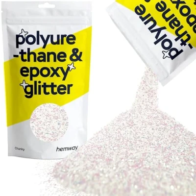 PREMIUM RESIN GLITTER: Our glitter adds a cool shimmer to epoxy & polyurethane resin projects; ideal for making candles, tumblers and resin accessories; use as a garage floor glitter, or mix with coatings as a glitter epoxy additive. CHUNKY GLITTER: Whether you're crafting resin art, making jewellery, or adding sparkle to a coaster, our glitter adds extra sparkle to your resin creations; the flakes help to scatter light and remain suspended within the resin. DURABLE & LONG-LASTING: Its waterproof & fade, heat and solvent-resistant; the colourfast and super reflective properties help maintain brilliance over time; our resin glitter has 50 colours and 6 sizes to choose from. EASY TO MIX GLITTER: Specifically designed for use in polyurethane & epoxy resin; the high-quality flakes blend smoothly into resin projects, ensuring a consistent, sparkly finish; suitable for all skill levels. MOTHER OF PEARL IRIDESCENT GLITTER: Hemway epoxy glitter will add a bright and eye-catching effect to all your resin designs; ideal for a variety of arts & crafts. DISCLAIMER: Colours may vary in different lighting conditions.
