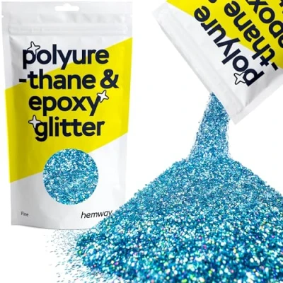 PREMIUM RESIN GLITTER: Our glitter adds a cool shimmer to epoxy & polyurethane resin projects; ideal for making candles, tumblers and resin accessories; use as a garage floor glitter, or mix with coatings as a glitter epoxy additive. FINE GLITTER: Whether you're crafting resin art, making jewellery, or adding sparkle to a coaster, our glitter adds extra sparkle to your resin creations; the flakes help to scatter light and remain suspended within the resin. DURABLE & LONG-LASTING: Its waterproof & fade, heat and solvent-resistant; the colourfast and super reflective properties help maintain brilliance over time; our resin glitter has 50 colours and 6 sizes to choose from. EASY TO MIX GLITTER: Specifically designed for use in polyurethane & epoxy resin; the high-quality flakes blend smoothly into resin projects, ensuring a consistent, sparkly finish; suitable for all skill levels. OCEAN BLUE HOLOGRAPHIC GLITTER: Hemway epoxy glitter will add a bright and eye-catching effect to all your resin designs; ideal for a variety of arts & crafts. DISCLAIMER: Colours may vary in different lighting conditions.