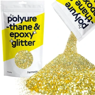 PREMIUM RESIN GLITTER: Our glitter adds a cool shimmer to epoxy & polyurethane resin projects; ideal for making candles, tumblers and resin accessories; use as a garage floor glitter, or mix with coatings as a glitter epoxy additive. CHUNKY GLITTER: Whether you're crafting resin art, making jewellery, or adding sparkle to a coaster, our glitter adds extra sparkle to your resin creations; the flakes help to scatter light and remain suspended within the resin. DURABLE & LONG-LASTING: Its waterproof & fade, heat and solvent-resistant; the colourfast and super reflective properties help maintain brilliance over time; our resin glitter has 50 colours and 6 sizes to choose from. EASY TO MIX GLITTER: Specifically designed for use in polyurethane & epoxy resin; the high-quality flakes blend smoothly into resin projects, ensuring a consistent, sparkly finish; suitable for all skill levels. SAND GOLD GLITTER: Hemway epoxy glitter will add a bright and eye-catching effect to all your resin designs; ideal for a variety of arts & crafts. DISCLAIMER: Colours may vary in different lighting conditions.