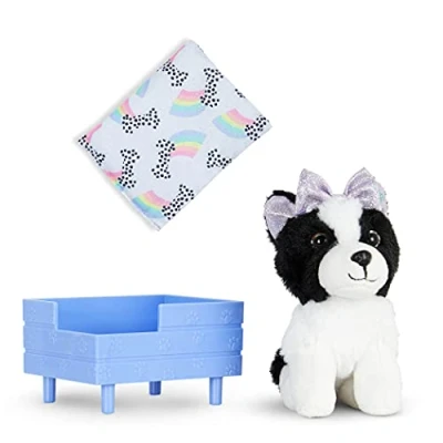 Mix & Match: compatible with most 14-inch dolls, accessories, and 6-inch stuffed animal pets..Recommended Age: suggested for kids 3+ (small parts); perfectly sized for small hands and easy to clean..Dolls sold separately Poseable Legs: Bend Ziggy’s legs to sit, stretch, shake paws, and strike fun poses with animal pals Pup-ular Style: features snuggly soft, black and white plush fur with glittery ears and a sparkly bow – because Ziggy loves to shine bright just like the Glitter Girls dolls do, Manufacturer: Branford LTD