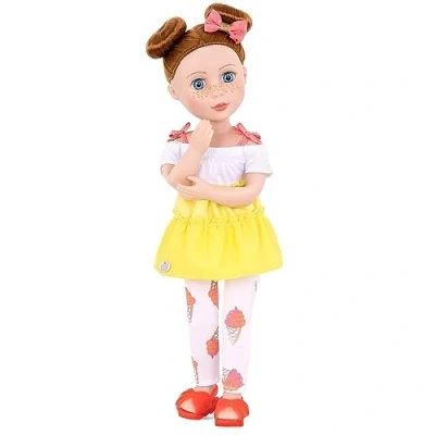 Charlie – 35.6 cm (14-inch) collectible doll Poseable! Arms bend at elbows and rotate at shoulders. Legs bend at knees and rotate at hips. Silky red nylon hair comes in two top knots and is fun to brush and style! Deep blue eyes with long eyelashes and freckles. Wears a bright yellow dress, ice-cream-print leggings, colourful shoes, and a matching glittery hair bow., Manufacturer: Maison Battat Inc.