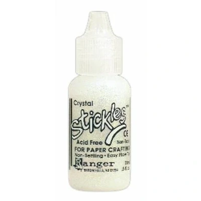 Stickles Glitter Glues Crystal Stickles Glitter Glue. Easily write dot dash draw and embellish. Available in .5 oz. fine point applicator tip bottles. Acid free Non-toxic Non-settling Easy-flow tip Water wash-off.