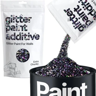 BEAUTIFUL PAINT GLITTER: Our glitter paint additive is an easy & effective way to add a unique, shimmering finish to transform any interior surface; soften walls with paint glitter; the glitter particles reflect light for an enchanting effect. EFFORTLESSLY BLENDS IN: Just add the glitter to emulsion, acrylic, or latex paint (flat, matt, sheen or silk), varnish or lacquer; mix the contents of the packet into paint, at a ratio of 100g (1 packet) per 1L. Stir thoroughly & apply for a stunning sparkle. LONG-LASTING SPARKLE: Designed for durability, the glitter particles are UV, heat, solvent & fade-resistant & waterproof to maintain their sparkly look over time; for best results use our buffing pads, once your paint is dry. STUNNING FINISH: Easily create high-end glitter walls with our glitter additive, perfect for beginners & experts looking to add some shimmer to walls. DISCLAIMER: Colours may vary in different lighting conditions. ENHANCED LIGHT REFLECTING TECHNOLOGY:The premium glitter crystal flakes are specially designed to sparkle under light when added to paint due to the highly reflective metallic properties and premium raw materials.