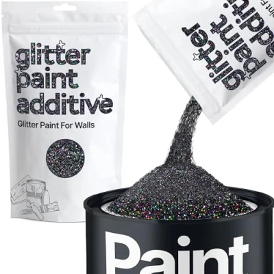 BEAUTIFUL PAINT GLITTER: Our glitter paint additive is an easy & effective way to add a unique, shimmering finish to transform any interior surface; soften walls with paint glitter; the glitter particles reflect light for an enchanting effect. EFFORTLESSLY BLENDS IN: Just add the glitter to emulsion, acrylic, or latex paint (flat, matt, sheen or silk), varnish or lacquer; mix the contents of the packet into paint, at a ratio of 100g (1 packet) per 1L. Stir thoroughly & apply for a stunning sparkle. LONG-LASTING SPARKLE: Designed for durability, the glitter particles are UV, heat, solvent & fade-resistant & waterproof to maintain their sparkly look over time; for best results use our buffing pads, once your paint is dry. STUNNING FINISH: Easily create high-end glitter walls with our glitter additive, perfect for beginners & experts looking to add some shimmer to walls. DISCLAIMER: Colours may vary in different lighting conditions. ENHANCED LIGHT REFLECTING TECHNOLOGY:The premium glitter crystal flakes are specially designed to sparkle under light when added to paint due to the highly reflective metallic properties and premium raw materials.