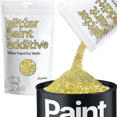 BEAUTIFUL PAINT GLITTER: Our glitter paint additive is an easy & effective way to add a unique, shimmering finish to transform any interior surface; soften walls with paint glitter; the glitter particles reflect light for an enchanting effect. EFFORTLESSLY BLENDS IN: Just add the glitter to emulsion, acrylic, or latex paint (flat, matt, sheen or silk), varnish or lacquer; mix the contents of the packet into paint, at a ratio of 100g (1 packet) per 1L. Stir thoroughly & apply for a stunning sparkle. LONG-LASTING SPARKLE: Designed for durability, the glitter particles are UV, heat, solvent & fade-resistant & waterproof to maintain their sparkly look over time; for best results use our buffing pads, once your paint is dry. STUNNING FINISH: Easily create high-end glitter walls with our glitter additive, perfect for beginners & experts looking to add some shimmer to walls. DISCLAIMER: Colours may vary in different lighting conditions. ENHANCED LIGHT REFLECTING TECHNOLOGY:The premium glitter crystal flakes are specially designed to sparkle under light when added to paint due to the highly reflective metallic properties and premium raw materials.