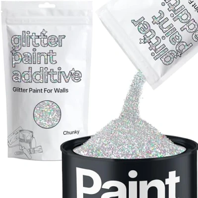 BEAUTIFUL PAINT GLITTER: Our glitter paint additive is an easy & effective way to add a unique, shimmering finish to transform any interior surface; soften walls with paint glitter; the glitter particles reflect light for an enchanting effect. EFFORTLESSLY BLENDS IN: Just add the glitter to emulsion, acrylic, or latex paint (flat, matt, sheen or silk), varnish or lacquer; mix the contents of the packet into paint, at a ratio of 100g (1 packet) per 1L. Stir thoroughly & apply for a stunning sparkle. LONG-LASTING SPARKLE: Designed for durability, the glitter particles are UV, heat, solvent & fade-resistant & waterproof to maintain their sparkly look over time; for best results use our buffing pads, once your paint is dry. STUNNING FINISH: Easily create high-end glitter walls with our glitter additive, perfect for beginners & experts looking to add some shimmer to walls. DISCLAIMER: Colours may vary in different lighting conditions. ENHANCED LIGHT REFLECTING TECHNOLOGY:The premium glitter crystal flakes are specially designed to sparkle under light when added to paint due to the highly reflective metallic properties and premium raw materials.