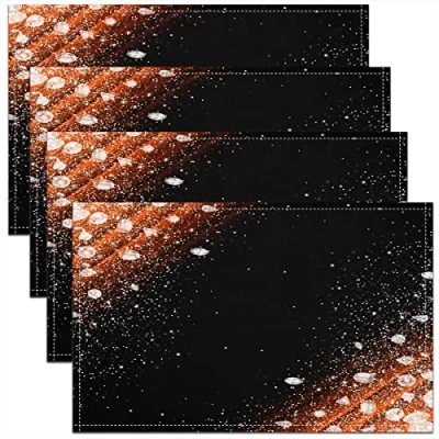 Glitter Placemats Set of 4, Modern Abstract Art Table Place Mats, Orange Black Pattern Placemat for Kitchen Dining Indoor Outdoor 45x30cm