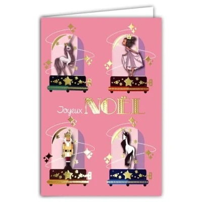 Glittering Gold Merry Christmas Card with White Envelope Size 12 x 17.5 cm Unicorn Princess Ballerina Dancer Nutcracker King Prince Best Wishes Girl Made in France
