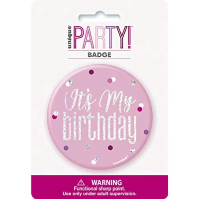 ELEGANT DESIGN: Stand out on your special day with this glitz pink & silver birthday badge, featuring a stunning "it's my birthday" design that adds a touch of sophistication to any celebration outfit. DURABLE MATERIAL: Made from high-quality materials, this birthday badge is built to last throughout your entire birthday event, ensuring you can wear it with confidence all day and night. PERFECT CELEBRATION ACCESSORY: Elevate your birthday experience with this essential party item, making it the perfect accessory to showcase your birthday status and create memorable photos. EASY TO USE: With a convenient pin-back attachment, this birthday badge easily attaches to clothing or accessories without hassle, allowing you to celebrate in style without any fuss. GIFT-WORTHY PRESENTATION: Delivered as 1 pc in a stylish packaging, this glitz pink & silver birthday badge makes for an ideal gift for friends and family members celebrating their birthdays, ensuring they'll feel extra special on their big day., Manufacturer: Unique