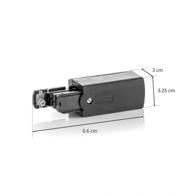 Optical termination - end power feed on the left for HV track system Noa Not only the power supply, but also a perfectly matching termination - that is the end power feed on the left for the three-circuit track system Noa. The end power feed is colour-coordinated - Protective earth on the left