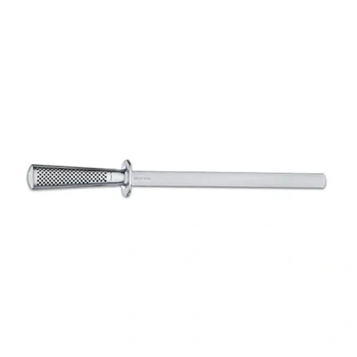 The Global G38 - 26cm Diamond Sharpening Steel is a sharpening steel that will keep your knives as sharp as the day you bought them. The weighted hollow handle helps to keep the steel in place while you sharpen, and its 300mm (12") rod offers plenty of room for those larger blades. The diamond coated surface of the steel ensures the fastest cutting possible, making this the perfect tool for any chef.To keep this Global G38 - 26cm Diamond Sharpening Steel in the best condition possible, you only need to clean it with some warm water and a light detergent. It should never be placed in the dishwasher or submerged in water.