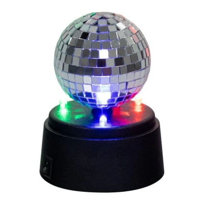Global Gizmos 45839 Mini Disco Ball/Light Up Mirror Ball/Efficient LED Lights / 3 Inch Diameter/Perfect for Tabletops, Kids Parties & More, Silver