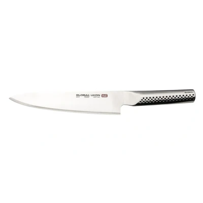 The Global Ukon Series Chef's Knife stands out as an all-purpose kitchen companion. Its significant blade length and robust construction make it ideal for various culinary tasks, from meticulous chopping of herbs to the robust slicing of larger cuts of meat. No matter the challenge, the Global Ukon Chef's Knife is up to the task, ensuring efficiency and precision in any cooking environment.