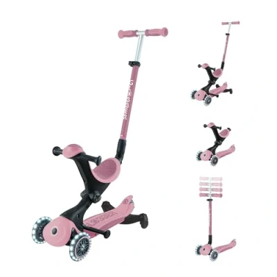 Globber GOUP Deluxe Lights ECO 360 3 Wheel Scooter with Seat and Module, for Children from 15 Months to 6 Years, Berry Pink