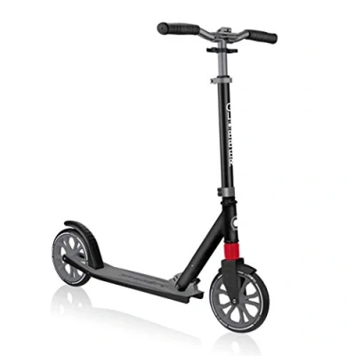Globber NL 500 205 2 Big Wheel Quick Folding Kick Scooter Reflective and Adjustable Height T Bar Comfort Handlebar Grips for Kids 8+, Teens, Adults Black & Grey