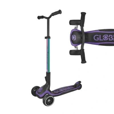 Globber Ultimum 3 Wheel Scooter with Patented Steering System, Adjustable Height, Robust, Extra Wide Deck and Wheels, Folding For Boys Girls 5+ to Adult 2 Year Warranty (Neochrome)