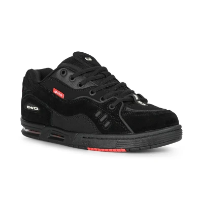 * Globe CT-4 is a reimagined and remastered version of the classic Chet Thomas pro model from the '90s * Black nubuck upper with black synthetic leather overlays, subtle red and white details, and a black and red sole unit * The rubber cup sole construction allows for increased grip and flexibility, while durability is also an important factor in the design of this shoe * Nitrocel midsole for maximum impact control * S-TRAC outsole for ultimate grip and flex * Globe's S-TracTM sole pattern * Raised rubber ollie guards on high-abrasion areas * Lace-protector placed on the bottom eyelets