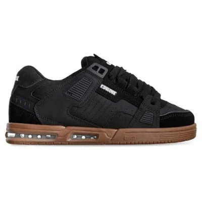 * Globe Sabre is their flagship model featuring a 360-degree wrap-around Nitrocel airbag for comfort and shock absorption plus increased padding in the collar * Black nubuck uppers and tonal black leather underlays merged with tonal details atop a black and gum sole unit * The rubber cup sole construction allows for increased grip and flexibility, while durability is also an important factor in the design of this shoe * Inner sock integrated for a secure fit and ankle support * Nitrocel midsole for maximum impact control * S-TRAC outsole for ultimate grip and flex