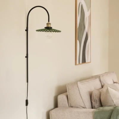 1-bulb wall light Cobbler 75 with black frame and green glass lampshade The Cobbler 75 wall light combines modern design with rustic charm and adds stylish accents to any living space. The combination of high-quality glass and robust metal creates a harmonious material composition that is both visually and functionally impressive. The black and green colour scheme underlines the versatility of the light and blends seamlessly into different interior styles – from modern to rustic. Ideal for use in the living room, the wall light creates a pleasant lighting atmosphere that enhances the room and creates a special mood. With its thoughtful design and high-quality workmanship, it becomes a durable and aesthetic element that functions both as a light source and a decorative highlight.