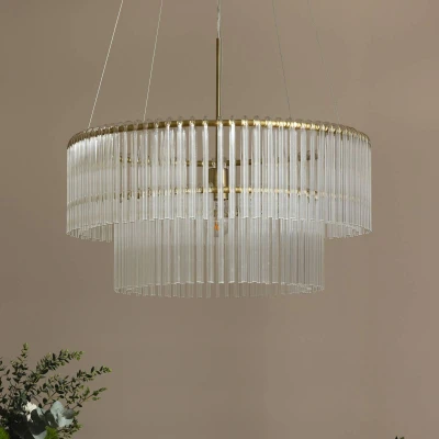 Lamp MastersHook 60 pendant light: elegance meets versatile lighting design The Hook 60 pendant light combines stylish materials such as transparent glass and brushed brass to create a harmonious design that adds both antique and modern accents. Its clear design language makes it a timeless eye-catcher that integrates perfectly into living rooms and dining rooms. The high-quality workmanship of glass and metal emphasises the elegant look and ensures long-lasting quality. The Hook 60 hanging light can be fitted with a dimmable or smart bulb, providing flexible lighting. Please note that the bulb and a dimmer are not included in the delivery and must be purchased separately as accessories.