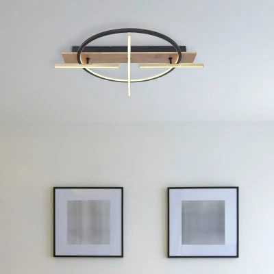 Globo Beatrix LED ceiling light, length 44 cm, wood/black, wood