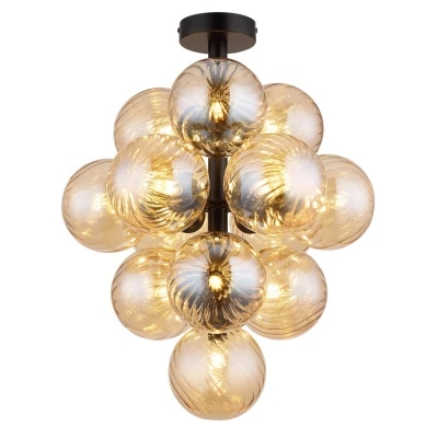 Globo Conor Globe Ceiling Light Matt Black Balls Amber Glass Shade 13x G9