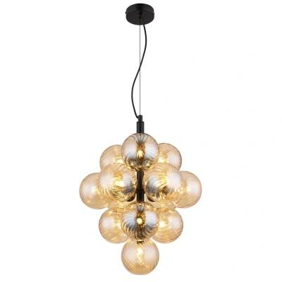 The CONOR pendant lamp with 13 amber-coloured glass spheres and a black, matt metal body provides an impressive lighting solution. Suitable for G9 LED bulbs (exclusive). Product features: Pendant lamp metal black matt, glass balls amber, cable pvc black, height adjustable, ø: 395mm, h: 1200mm, excl. 13x g9 led 4w 230v
