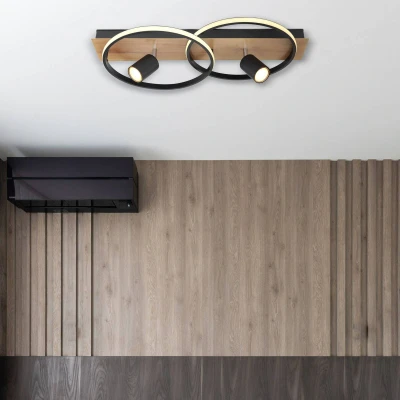 Globo Danny LED ceiling light, wooden panel, dimmable
