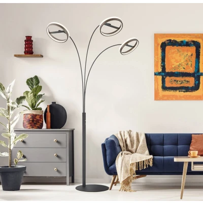 Della LED floor lamp with adjustable light colour (CCT) The Della LED floor lamp combines modern design with functional lighting and is ideal for living and dining rooms. Made of high-quality metal, aluminium and plastic, it seamlessly blends into contemporary interior design styles. The integrated LED light source offers an energy-saving lighting solution that impresses with its long service life. A special feature of Della is the CCT function, which allows the light colour to be adjusted from warm white to cool white to daylight. The practical touch dimmer allows easy regulation of brightness to create the desired atmosphere. The combination of black, dark grey and opal gives the floor lamp an elegant touch that adds a special touch to any room.