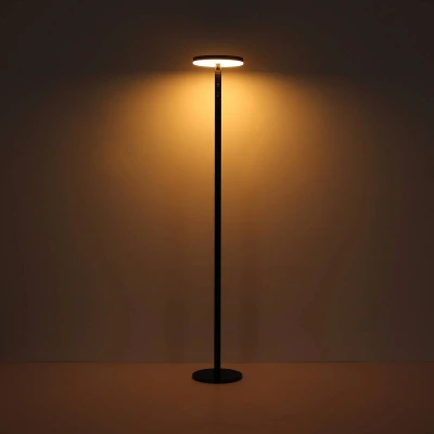 LED floor lamp 36508 with CCT function and dimmable This solar-powered floor lamp made of matt black aluminium and plastic combines simple design with modern functionality. The round lampshade with an opal white plastic cover allows the built-in LEDs to shine evenly downwards. The light offers a light colour that can be adjusted in three stages (1,800 K, 2,700 K or 3,000 K) and has a touch dimmer that can be used to make it infinitely dimmable. When the sun is not shining, the light can be charged using the USB-C charging cable supplied to ensure evening lighting - Charging time via USB approx. 8 hours - Light colour approx. 12 hours
