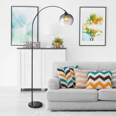 Timelessly elegant Newcastle arc floor lamp - height-adjustable The matt black lacquered metal, elegant black marble and smoke-coloured glass combine in the Newcastle floor lamp to create an impressive design. The lighting can be conveniently controlled using the practical foot pedal switch in the cable The Newcastle floor lamp is height-adjustable from 141 cm to 196 cm.