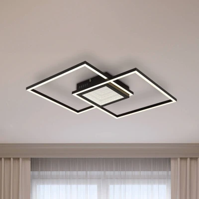 Lights.coSaunders square LED ceiling light with 3D effect The Saunders ceiling light in a square design with two overlapping and offset squares offers a modern lighting solution. The black metal body and the aluminium lampshade in black, matt and opal plastic create an impressive 3D effect. With a high light output and a controllable light colour (CCT) ranging from warm white to daylight, the Saunders LED ceiling lamp leaves nothing to be desired. The included remote control (including 2 x AAA batteries), dimmability via remote control or wall switch, integrated memory function and three-stage switchable night light offer additional comfort. - Integrated timer