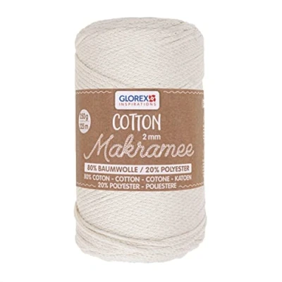 GLOREX 5 1008 01 Macrame Cotton 250 g 2 mm Length 225 m Cream Triple Twist Yarn 100% for Crocheting, Knitting, Knitting and Designing