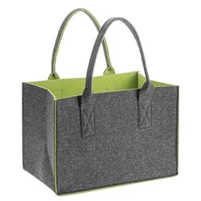Bag in anthracite/green with two handles Size: approx. 26 x 38 x 24 cm, material: 100% high-quality felt Environmentally friendly, durable and robust, the surface is easy to clean Versatile, reusable and easy to clean Easy to store and transport food, decorations, toys, magazines, firewood and daily necessities
