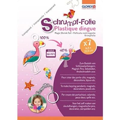 Glorex 6 1230 702 shrink Film in A5, Set of 7 Sheets Transparent, for Designing Individual Tags and pins, White, 15 x 21 cm