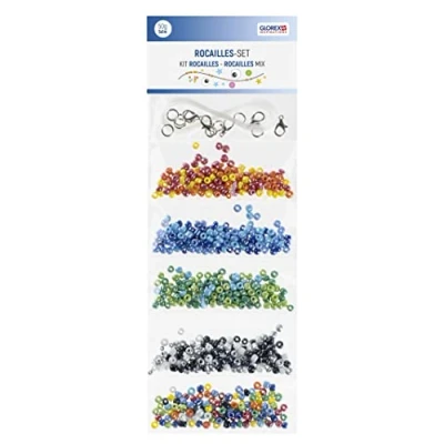 Glorex 6 1630 301 Seed Beads Set, 50 g, 5 x 1 m, Assorted Colours, with Cords and Clasps, Ideal for Designing Jewellery, Bracelets, Necklaces, Accessories Decoration