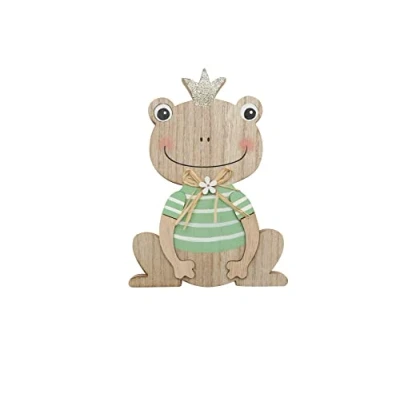 Wooden figure frog with green shirt, flower and glitter crown, suitable as a beautiful spring decoration Size: approx. 9.5 x 14 x 2 cm, material: MDF wood Cute stand for tables, window sills, shelves and dressers in the home and garden As a special gift, for frog lovers, for birthdays, Easter or as a spring decoration Coordinating colours, created with attention to detail