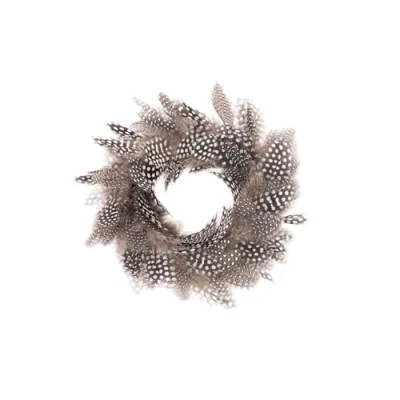 Decorative wreath made of guinea fowl feathers Size: diameter 18 cm Colour: brown feather wreath with white dots Versatile use as a craft material or decoration For dream catchers, as a gift decoration, for decorating and much more.