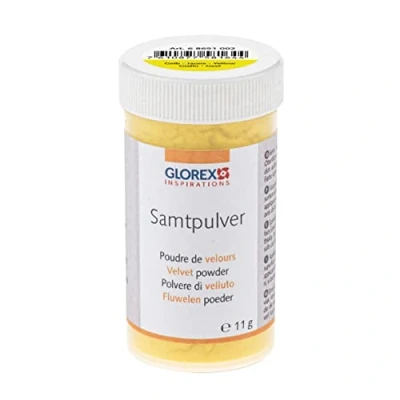 Amazon MarketplaceVelvet powder for finishing Quantity: approx. 11g, Yellow Creates a velvet-like soft surface Ideal for jewellery making, decoration, crafts Lots of fun for adults and children, Manufacturer: Glorex