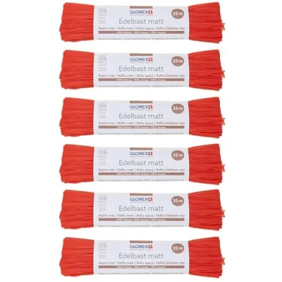 GLOREX 6 9400 503K Raffia Edelbast, Bundles of 20 m Matte Raffia, Coral Red for Crafts, Decoration or Arrangements, Bouquets and Other Floristry Works